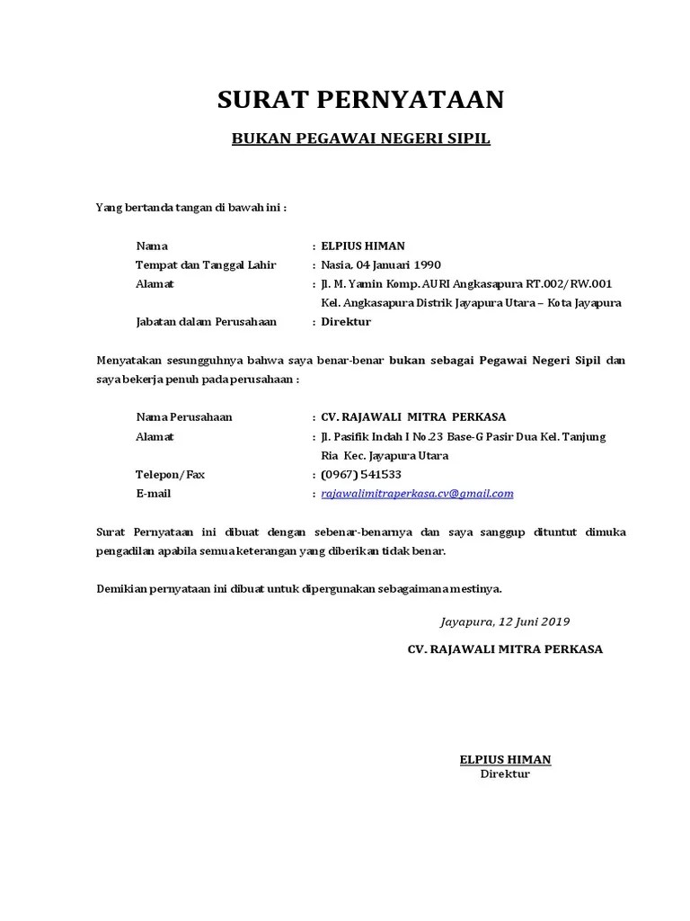 Contoh Surat Pernyataan Bukan Pns / Contoh Surat Permohonan Cpns Surat Pernyataan Cpns Tidak Pernah Dihukum Penjara Dan Surat Pernyataan Cpns Tidak Pindah Tugas Untuk Jangka Waktu Tertentu Dadang Jsn - Di antaranya surat lamaran dan surat pernyataan yang ditujukan ke bupati sukabumi.