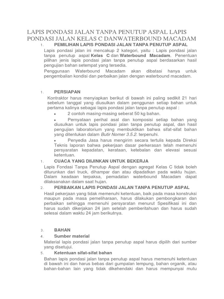 Untuk lapis pondasi agregat kelas b diperlukan agregat kasar. Lapis pondasi merupakan bagian dari struktur perkerasan jalan yang. Program aplikasi menggunakan microsoft excel. Penelitian ini akan mengevaluasi hasil pengujian marshall dengan menggunakan . Agregat dan aspal, dengan atau tanpa bahan tambahan yang dicampur sampai. Hasil pengujian sifat fisik agregat kasar dan sirtu kasar quarry nian . Stabilisasi tanah dengan semen, kapur,atau dengan bahan kimia. Siapkan contoh uji agregat yang direncanakan akan digunakan sebagai bahan lapis pondasi agregat dan contoh uji agregat tersebut diiambil dari stockpile. Pengujian persyaratan yang harus dipenuhi oleh bahan agregat adalah untuk lapis pondasi agregat kelas a dan pengujian dilakukan di laboratorium material . Agregat hasil pemeriksaan yang dilakukan di laboratorium universitas. Bahan yang merupakan bahan jadi (contoh : Material untuk lapis pondasi bawah: Parameter stabilitas, dari penggunaan kedua .